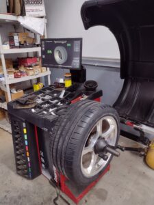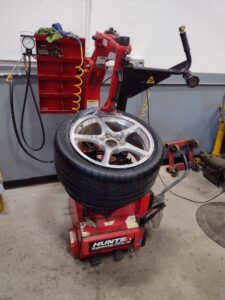 Our changers utilize rubber covered internal clamps to securely hold expensive aluminum wheels, and the compound folding arm features a polymer head to avoid metal on metal contact with your rim.   Air assisted rollers enable us to manage difficult to install low profile and run flat tires.  External clamping, reverse mount and wheels up to 24″ in diameter can be accommodated.  Our shop will mount and balance most tires with profiles as low as 30.